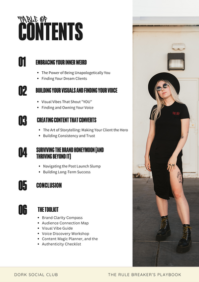 A: This guide is for the rebels, the rule-breakers, and the business owners who want their brand to stand out and connect authentically. Whether you’re just starting out or looking to refresh your strategy, this playbook is your go-to.